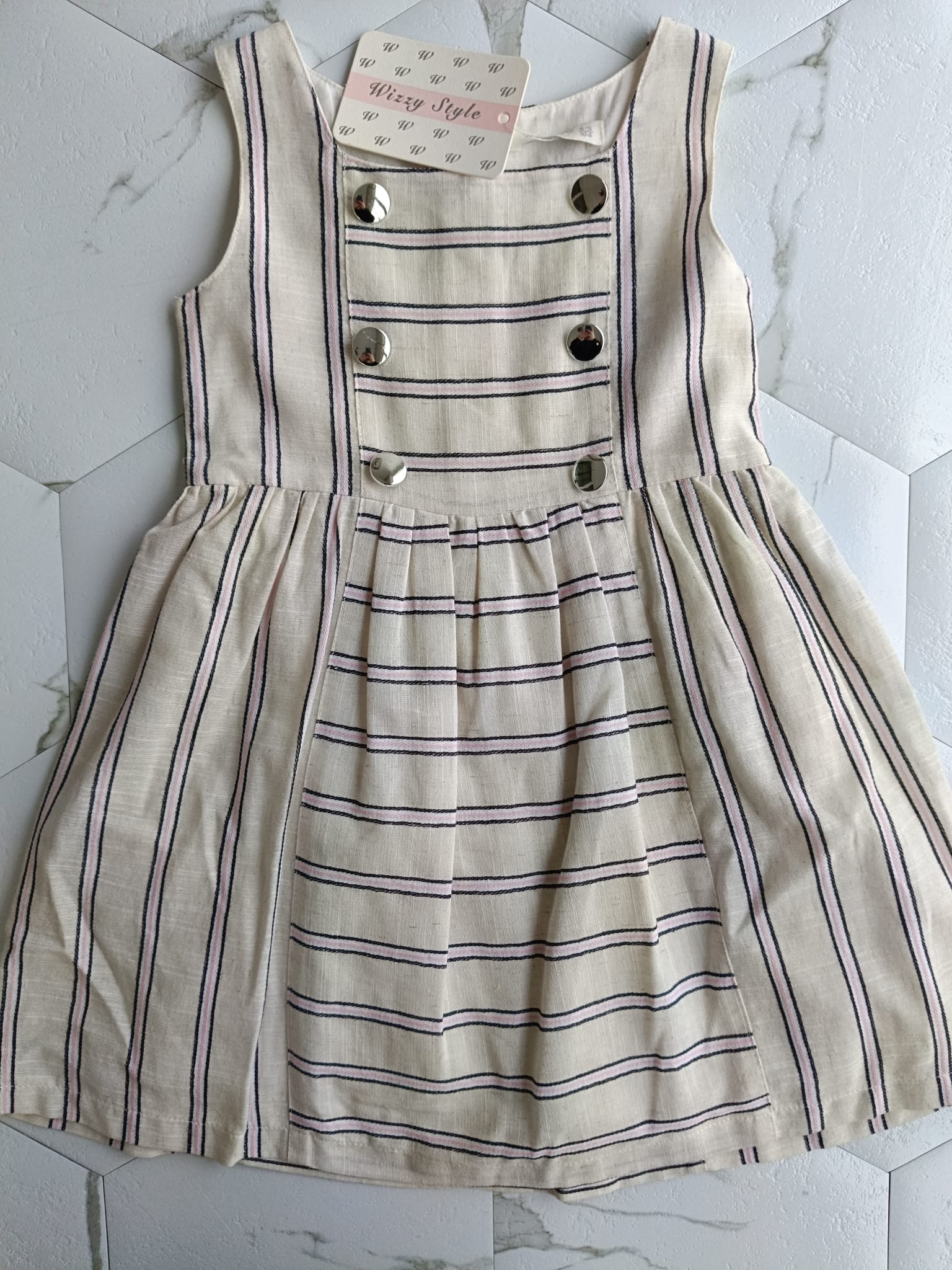 PEMBE CIZGILI KETEN ELBISE